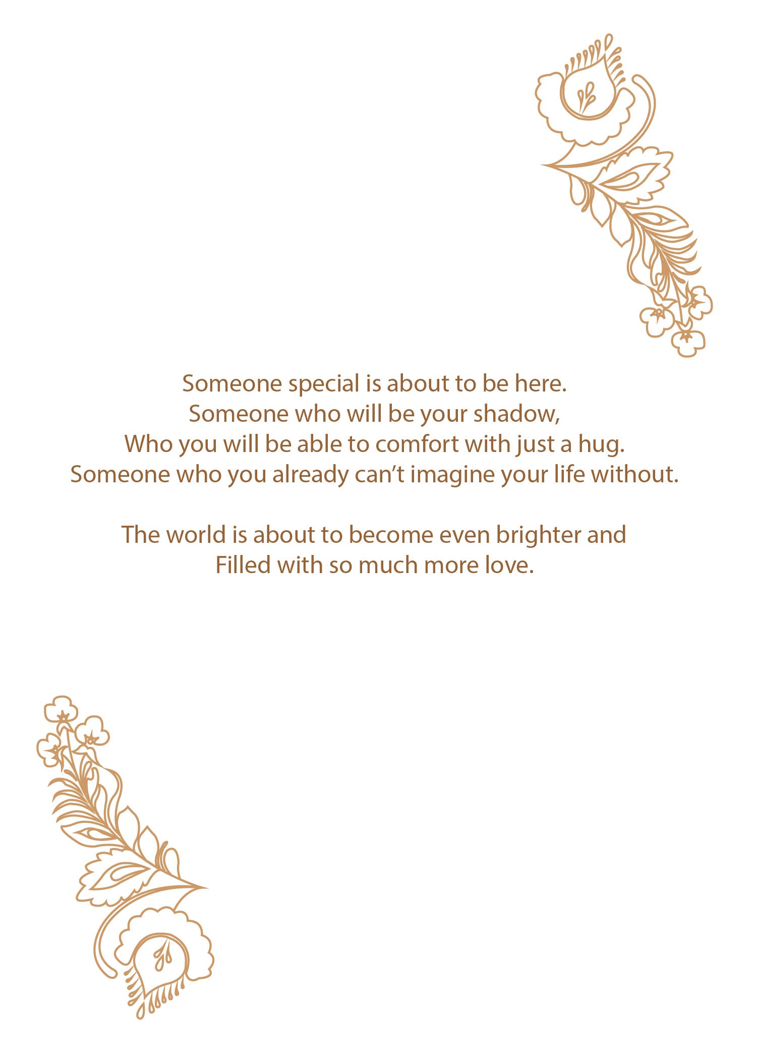 English Inside Message: Someone special is about to be here. Someone who will be your shadow, who will be able to comfort with just a hug. Someone who you already can't imagine your life without. The world is about to become even brighter and filled with so much more love.