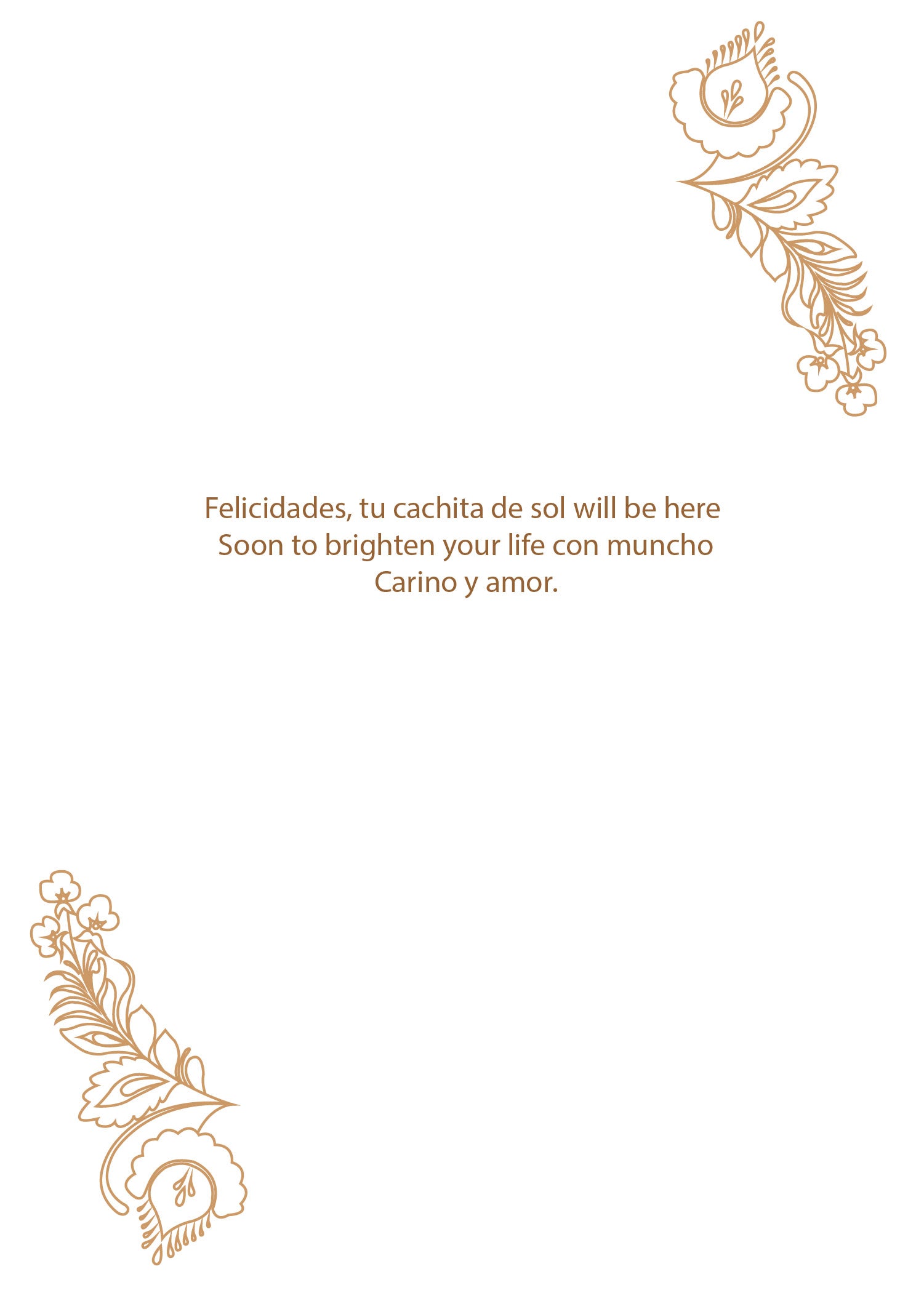 Spanglish Inside Message: Felicidades, tu cachito de sol will be hrere soon to brighten your life con mucho carino y amor.