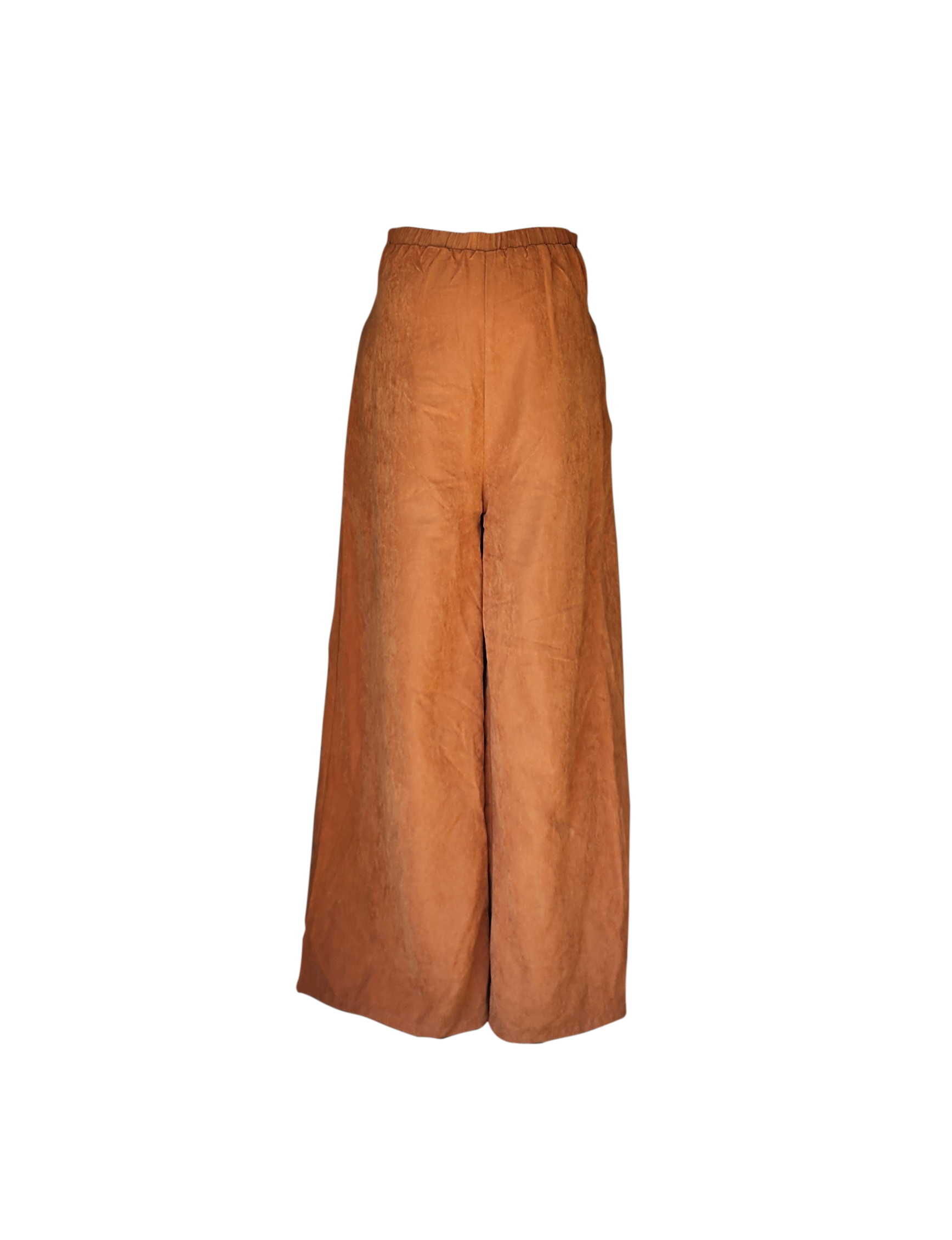 Experience comfort and style with the Jenny Pants, crafted from ultra-high vegan suede for a soft, luxurious feel. Featuring convenient pockets and shirring on the back waist, these pants offer a flattering fit that moves with you. The wide-leg design adds a modern, elegant touch, perfect for dressing up or down. Elevate your wardrobe with these versatile, cruelty-free pants that combine fashion and function effortlessly.